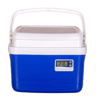 Revestimento interno em Poliuretano e com Termômetro acoplado, ideal para o transporte de produtos e materiais resfriados como vacinas, bolsas de sangue, botox, materiais biológicos e medicamentos.